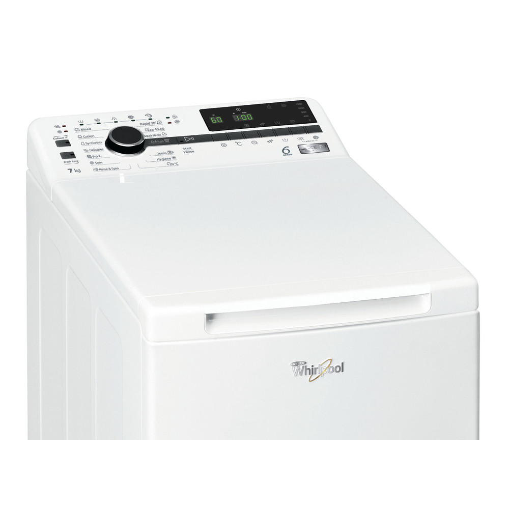 Whirlpool samostojeću perilicu rublja odlikuju: bijela boja. Velika zapremina od 7,0 kg. Naš uski uređaj je savršeno rješenje za mali prostor. Brza, energetski efikasna centrifuga od 1200 okretaja u minuti. Ekskluzivna 6. SENSE tehnologija, koja dinamički prilagođava postavke svakoj pojedinoj količini rublja, osiguravajući idealnu njegu za sve tkanine.