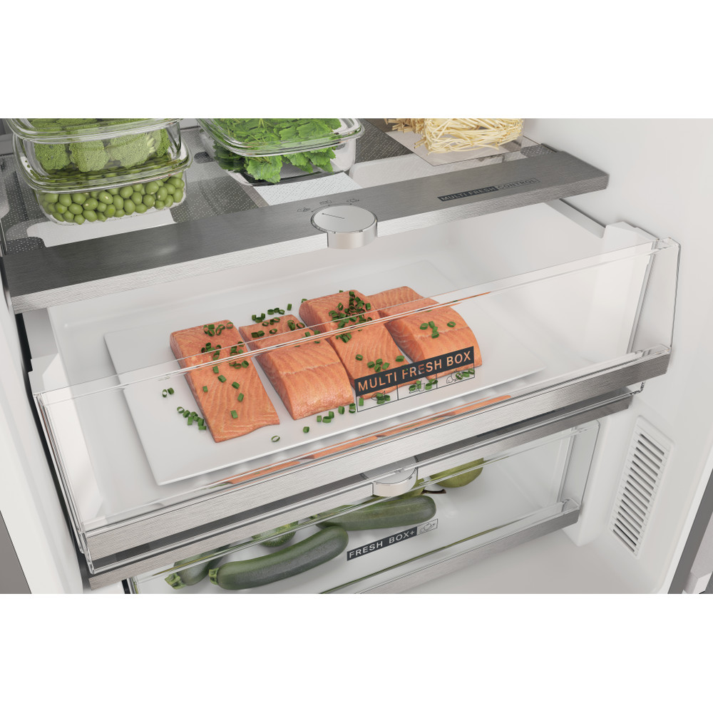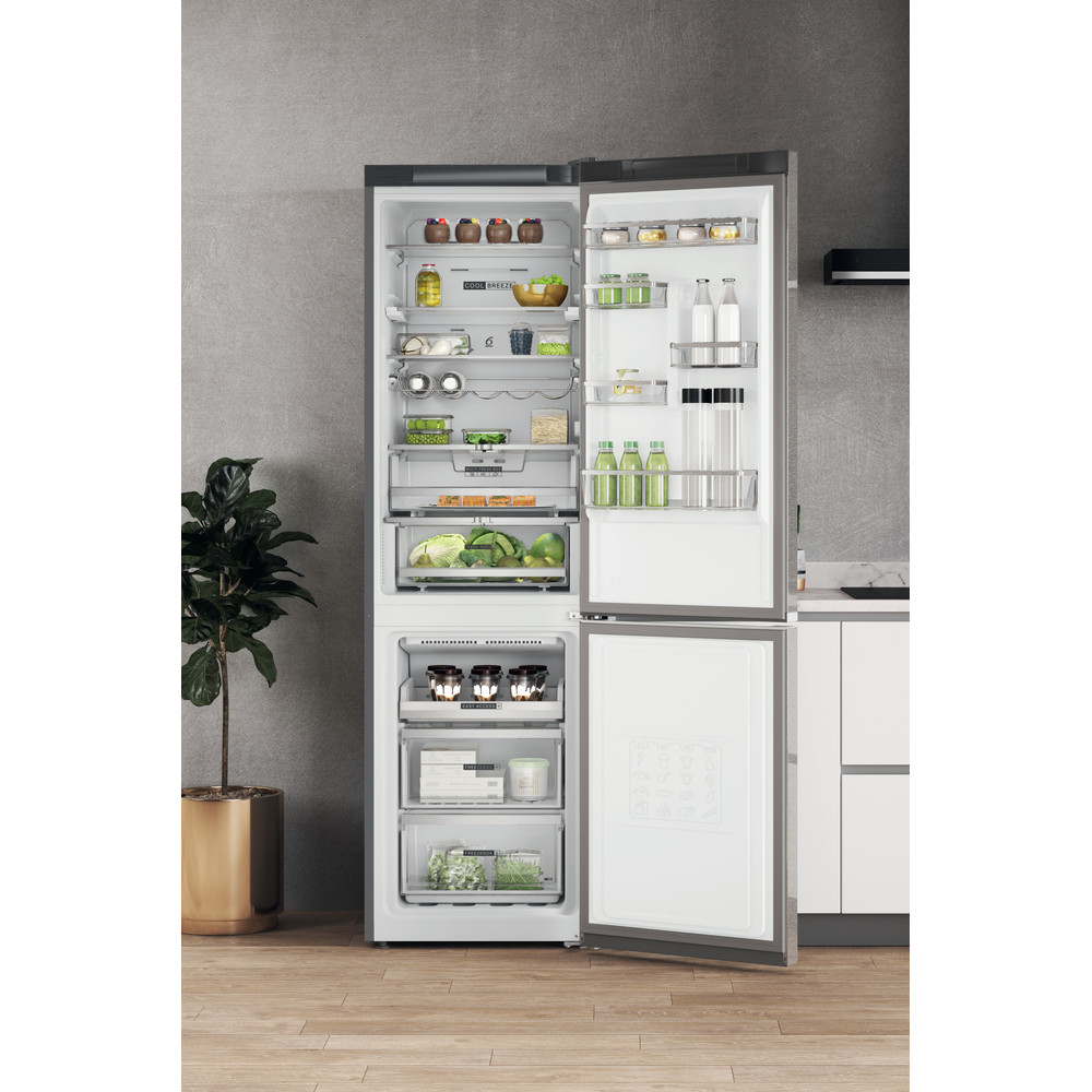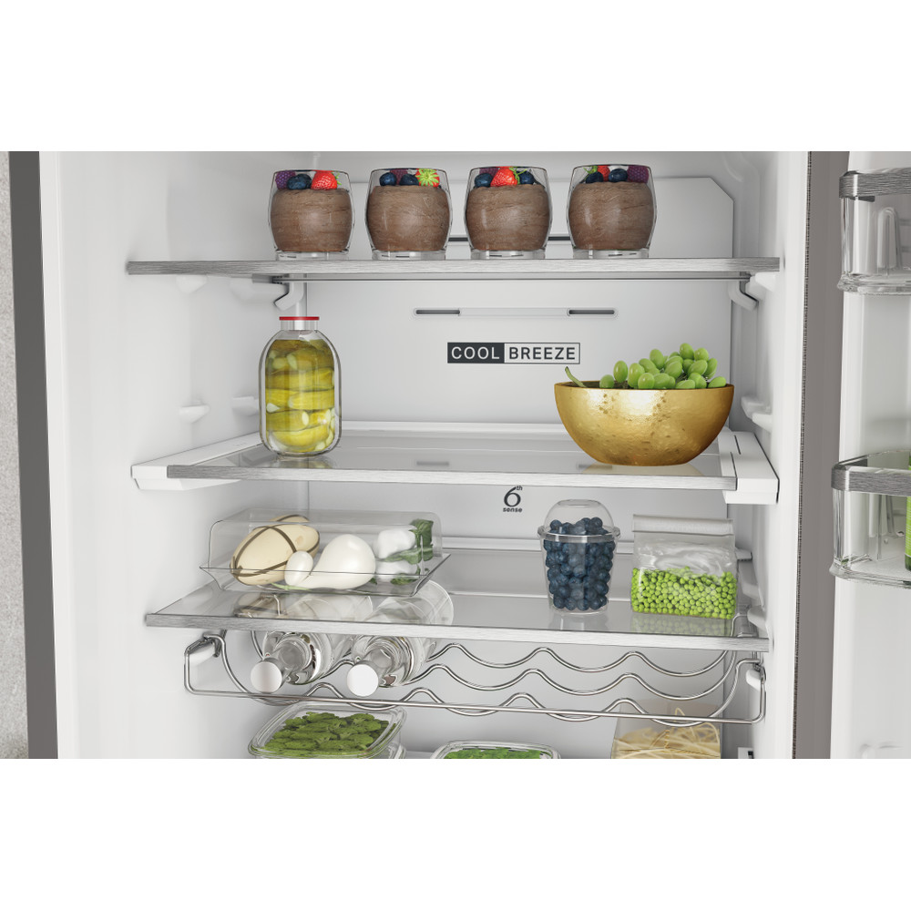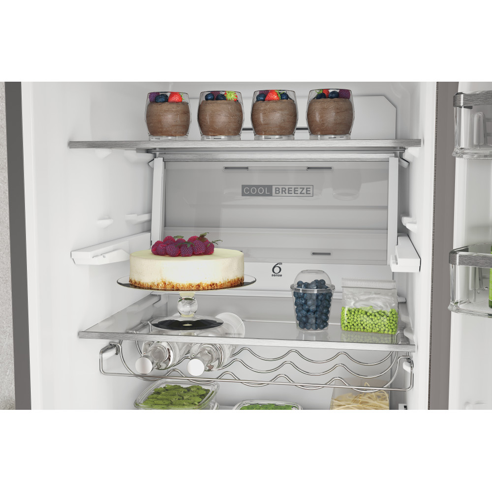 Whirlpool samostojeći hladnjak sa zamrzivačem odlikuju: inox boja. No frost, tehnologija rada bez stvaranja leda, koja efikasno spriječava nagomilavanje leda u vašem zamrzivaču tako što smanjuje nivo vlažnosti. Visok uređaj da zadovolji potrebe vaše obitelji. Staklene police koje su istovremeno i čvrste i elegantne. 6th SENSE senzori koji automatski smanjuju temperaturu u vašem uređaju prilikom odlaganja nove hrane i time smanjuju potrošnju energije.