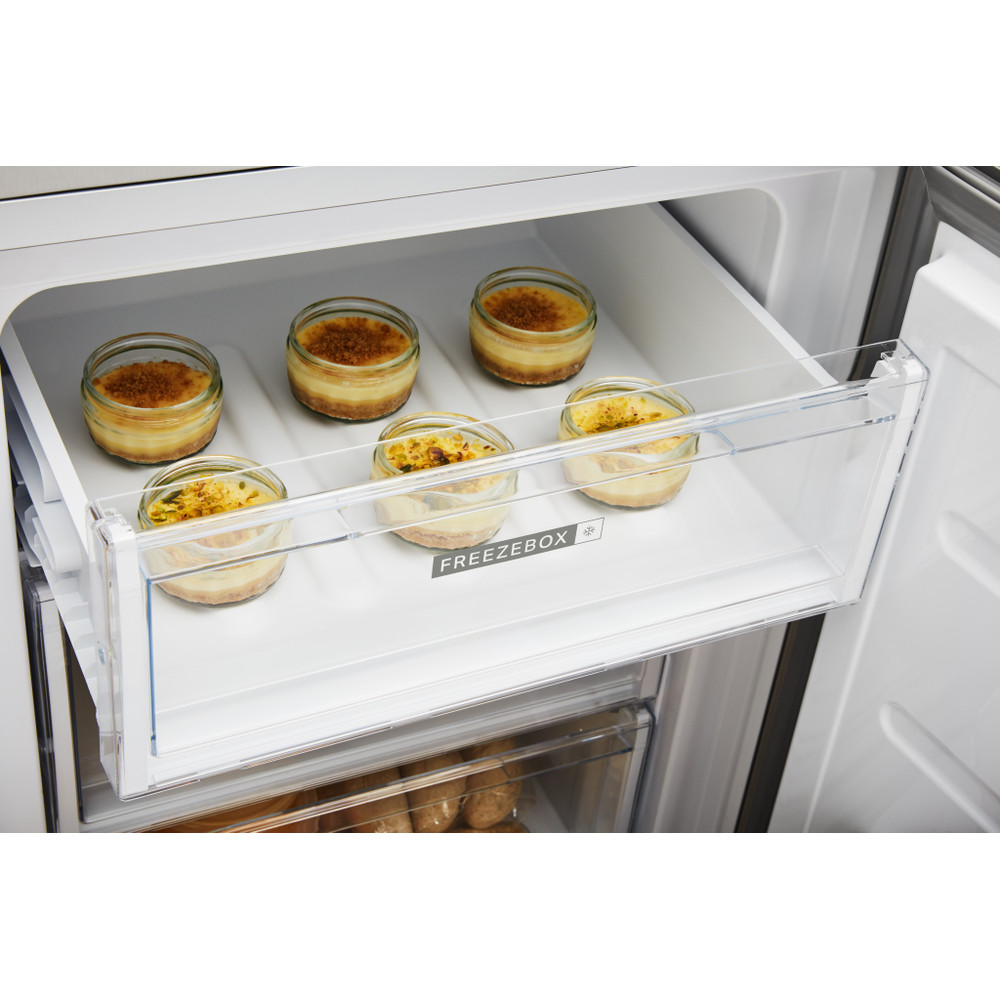 Whirlpool samostojeći hladnjak sa zamrzivačem odlikuju: inox boja. Optički Inox dizajn sa zaštitom od otisaka prstiju. Staklene police koje su istovremeno i čvrste i elegantne. 6th SENSE senzori koji automatski smanjuju temperaturu u vašem uređaju prilikom odlaganja nove hrane i time smanjuju potrošnju energije. Praktična polica za sigurno čuvanje boca.
